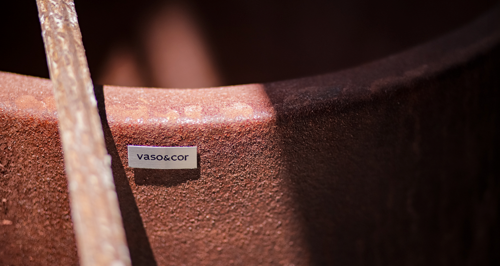 Através de uma técnica exclusiva, a Vaso e Cor conseguiu replicar essa oxidação sobre a fibra de vidro, induzindo uma oxidação natural e controlada. Assim, essa técnica resulta em uma superfície com aparência autêntica de aço Corten na peça.